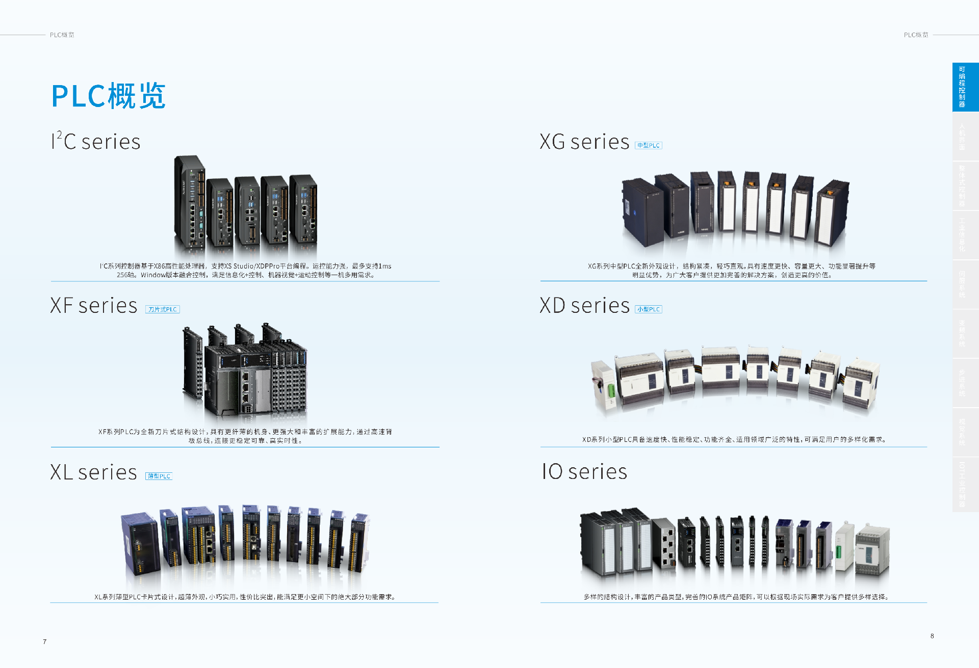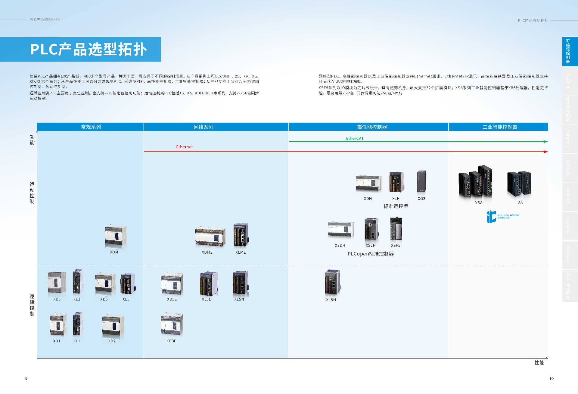 XD、XL六个系列;从产品性能上可以分为常规型PLC、⽹络型PLC、⾼性能控制器、⼯业智能控制器;从产品功能上⼜可以分为逻辑